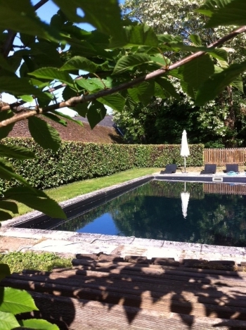 Un agréable jardin avec sa piscine privée, vous permettra d’apprécier la vue sur la pièce d’eau.