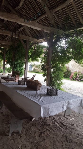Avec sa cour fermée et son grand préau recouvert de glycine, il est agréable d’y prendre ses repas à l’abri du soleil ou de la pluie.